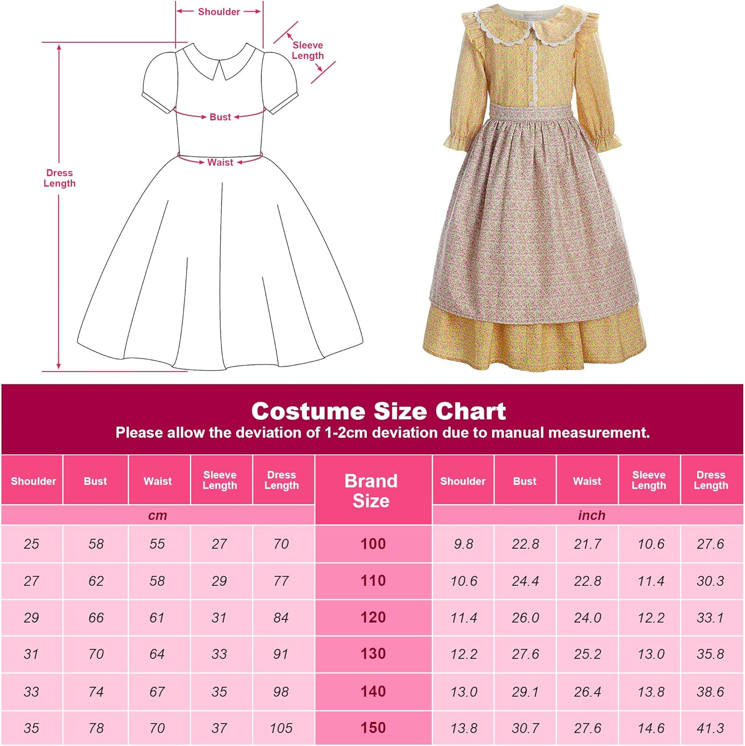 This costume is a 19th century dress worn by the adventurous pioneer girls of the American western frontier. It is perfect for your kids to play Laura in Little House on the Prairie and also suitable for Colonial Day, school performance, picnics, pioneer day and many other occasions.