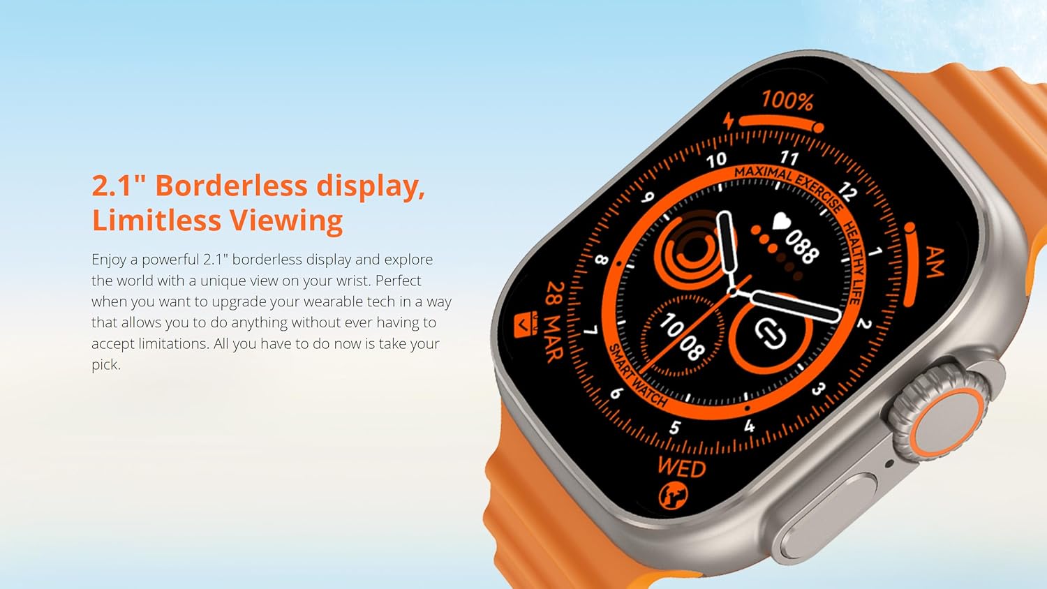 Impressive Display: The RIVERSONG Motive 5T Smart Watch features a borderless 2.1-inch display that offers a stunning visual experience.