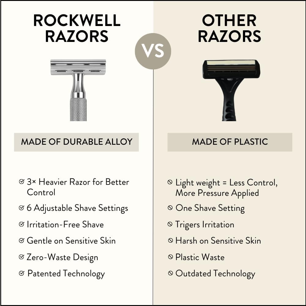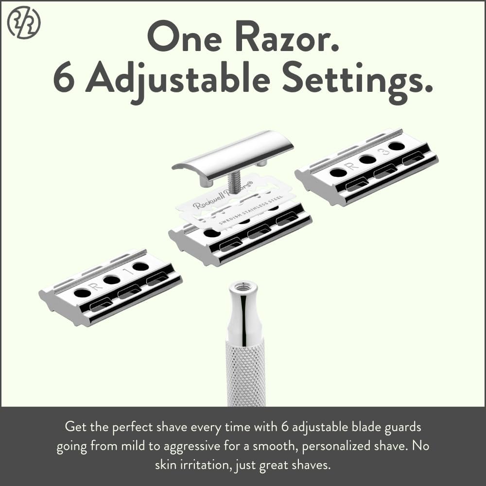 INNOVATIVE ADJUSTABLE SYSTEM = NO MORE NICKS OR CUTS – This safety razor features Rockwell’s patented design that offers 6 adjustable shave settings to deliver the best shaving experience for every skin type and every shaving occasion