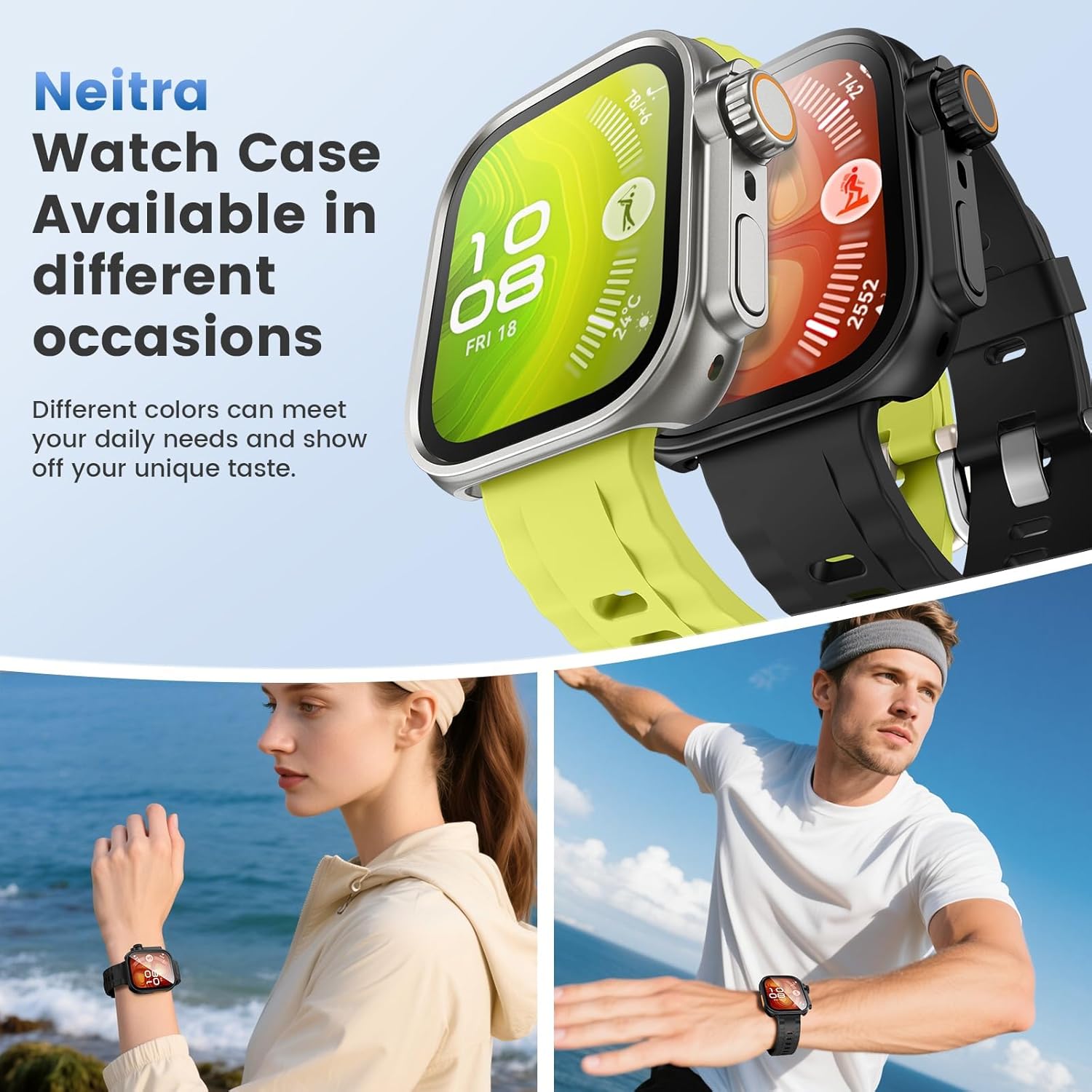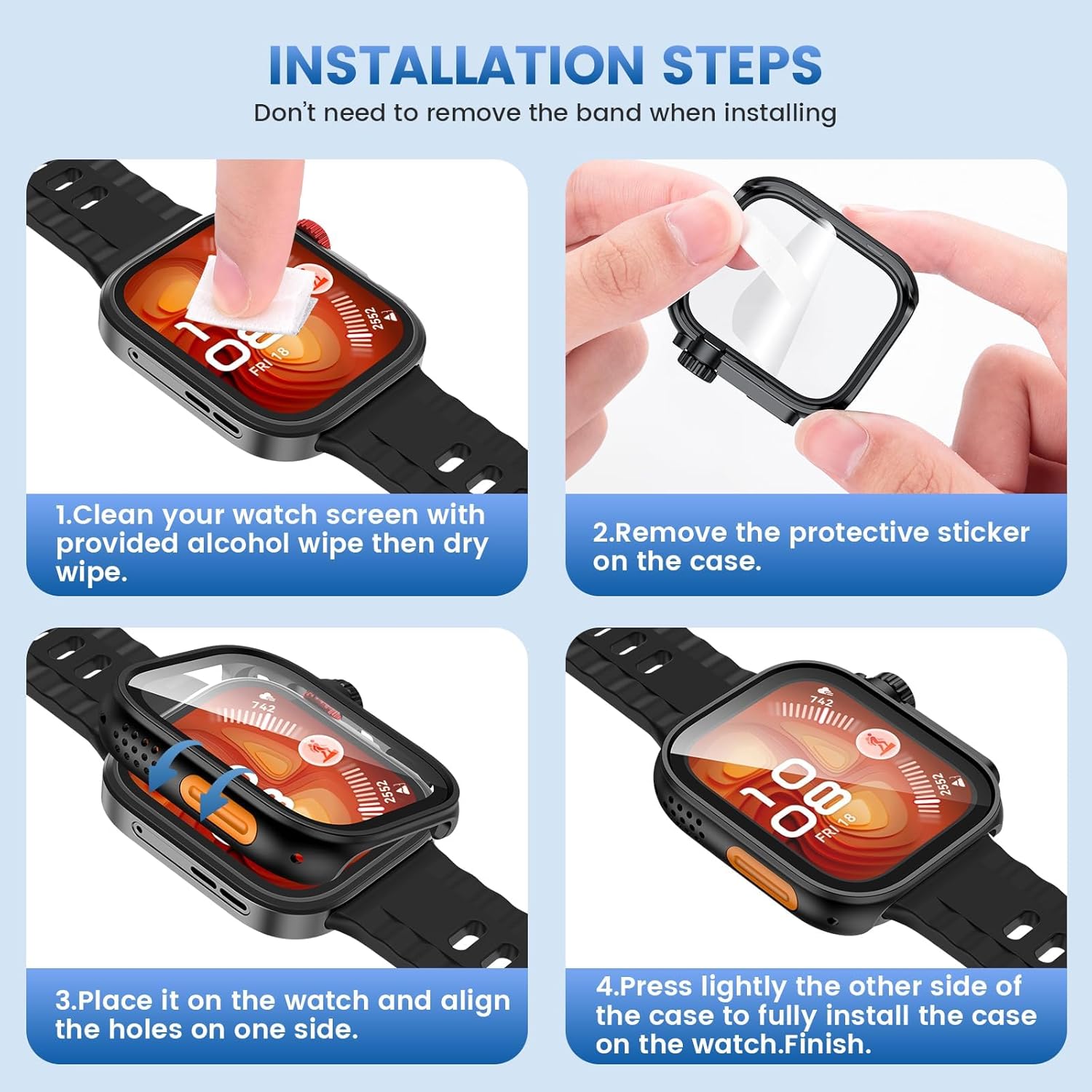 【HIGH SENSITIVITY TOUCH】This case for Huawei Watch Fit 4 Pro solve your touch troubles. With 99.99% HD clarity and high touch sensitivity, the built-in tempered glass screen protector maintains the original visual quality and responsiveness of your device. Enjoy a seamless and precise touchscreen experience that withstands the test of time.