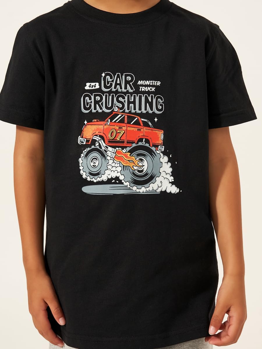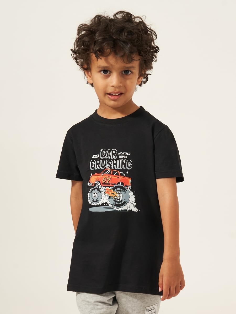 Size shown on Model: 5-6 YRS, Product Type: T-shirt, Pattern: Graphic, Lifestyle: Daytime, Neck: Round Neck, Sleeve Length : Short Sleeves, Material: Cotton, Fit: Regular, Care Instructions: Wash according to instructions on care label, Length: Regular, Designed with a refined and modern stylish look. Profound material offers immense comfort