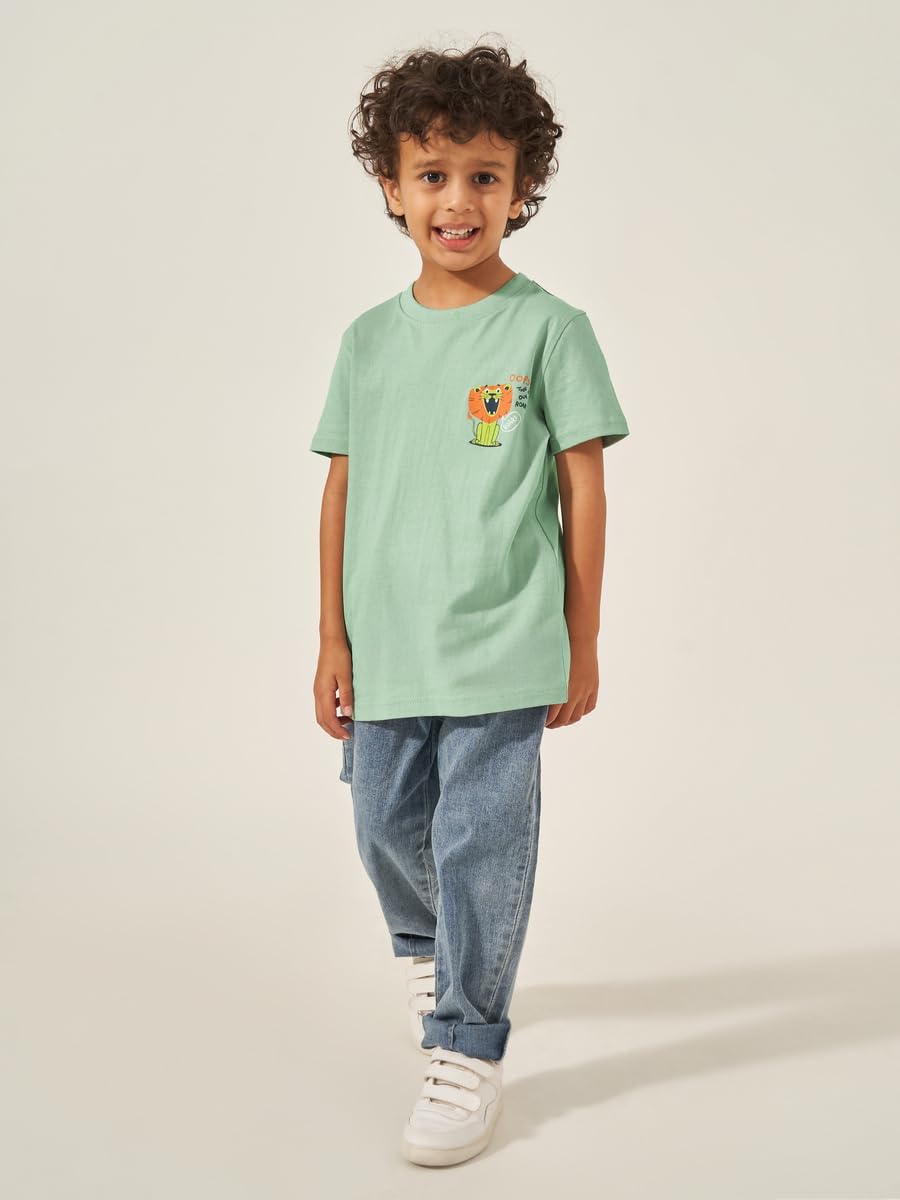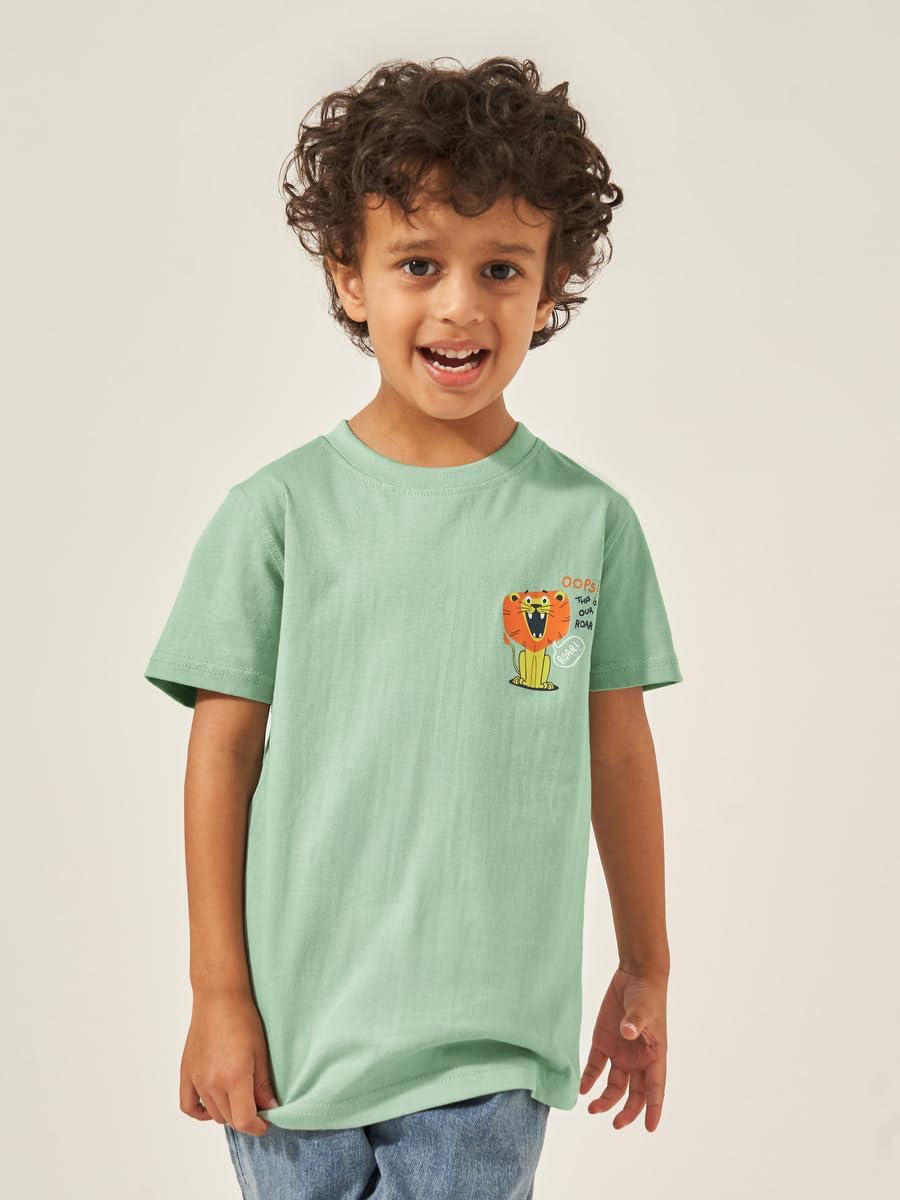 Size shown on Model: 5-6 YRS, Product Type: T-shirt, Pattern: Graphic, Lifestyle: Daytime, Neck: Round Neck, Sleeve Length : Short Sleeves, Material: Cotton, Fit: Regular, Care Instructions: Wash according to instructions on care label, Length: Regular, Designed with a refined and modern stylish look. Profound material offers immense comfort