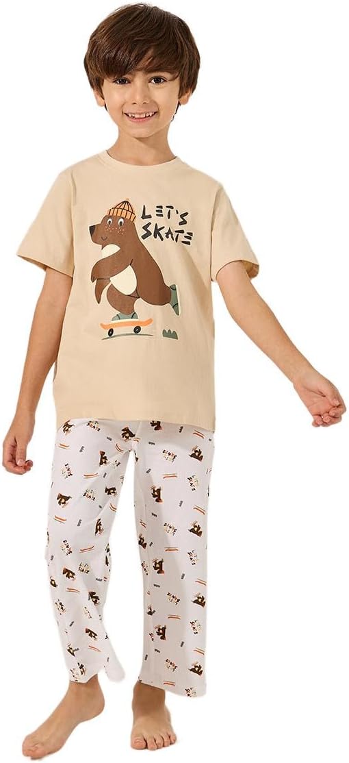 شراء Styli Boys Printed Round Neck T-Shirt And Pyjama Set اون لاين من امازون او نون وحراج Styli Boys Printed Round Neck T-Shirt And Pyjama Set