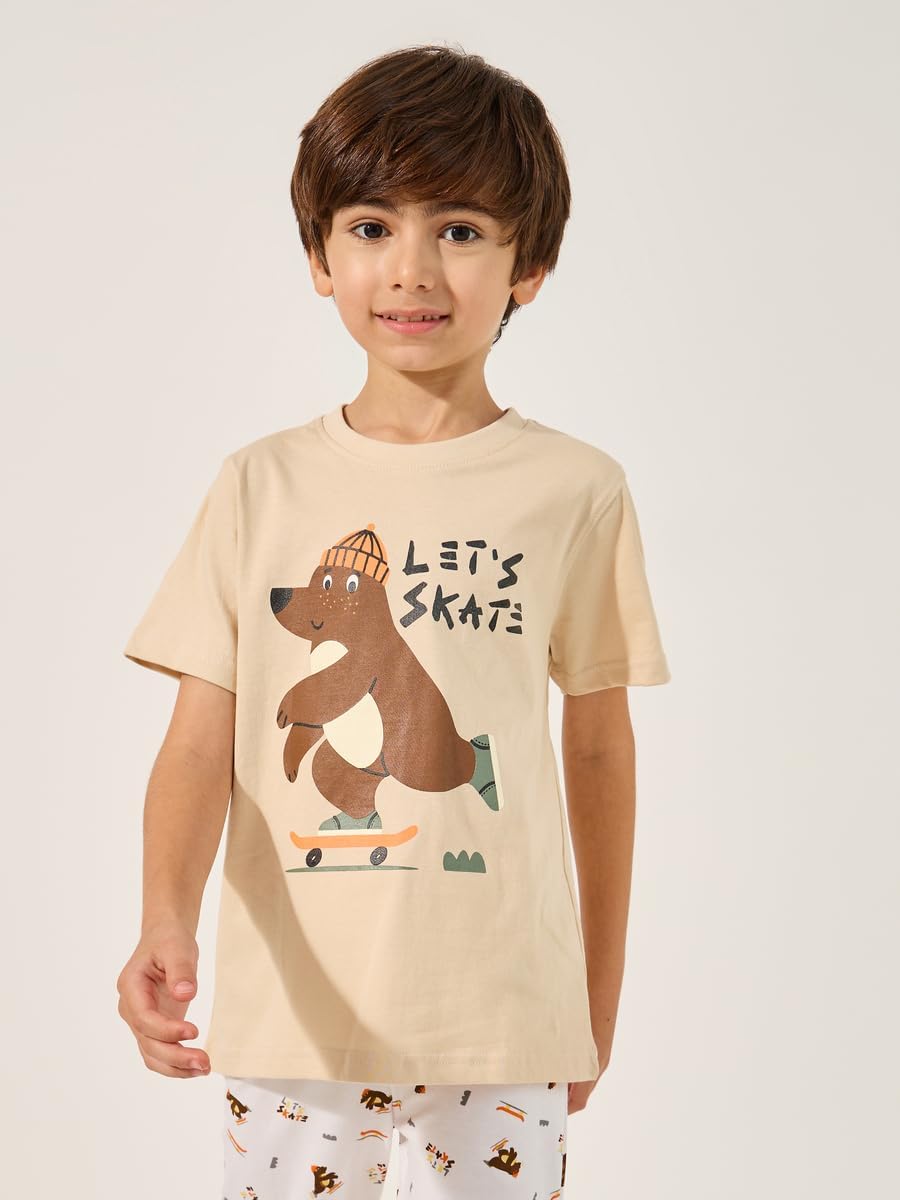 شراء Styli Boys Printed Round Neck T-Shirt And Pyjama Set اون لاين من امازون او نون Styli Boys Printed Round Neck T-Shirt And Pyjama Set