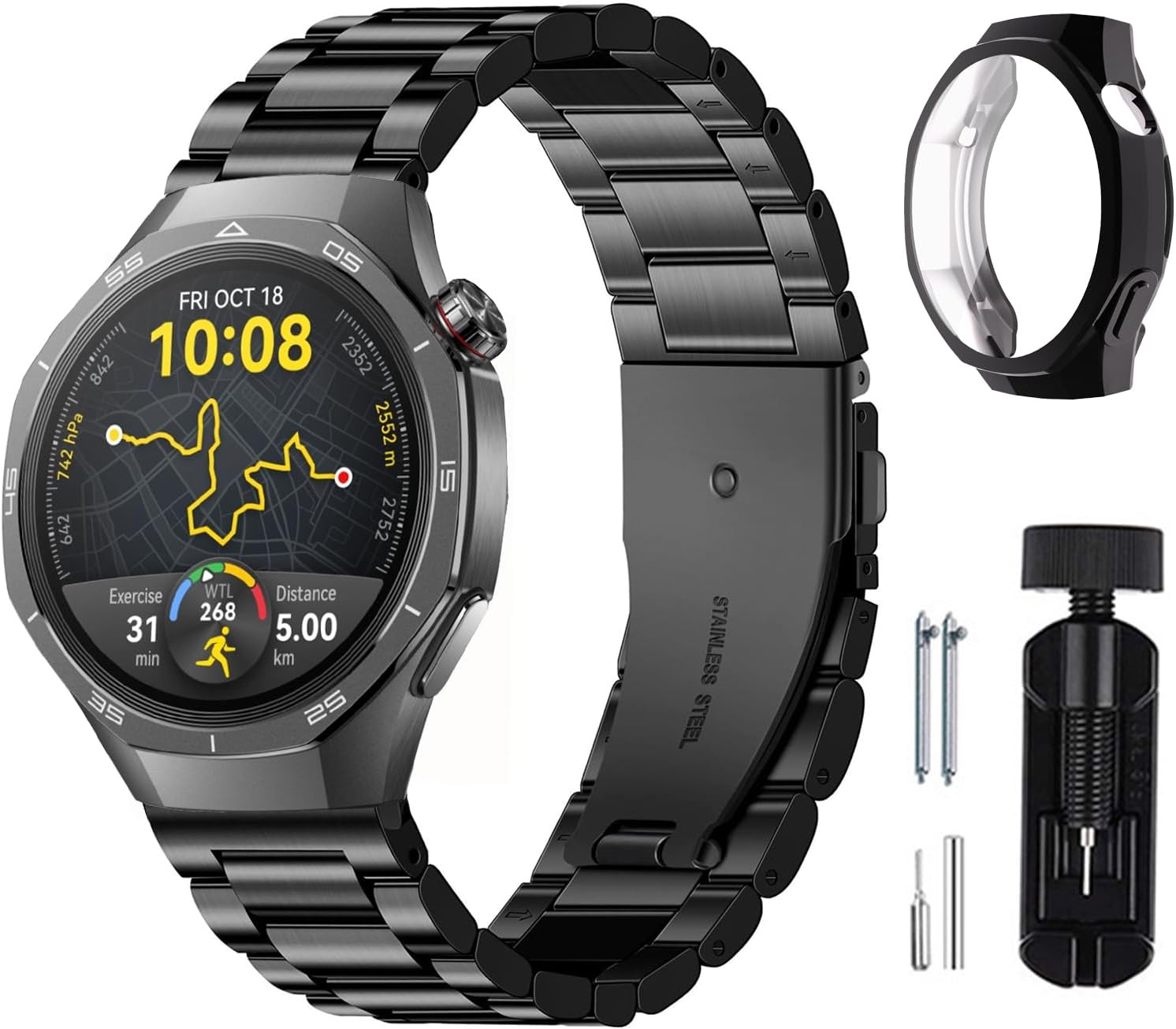 شراء SUMK Metal Watch Strap Compatible with Huawei Watch GT5 Pro/GT4/GT3 46mm with All-Around Protective Cover Screen Protector Case – Black اون لاين من امازون او نون وحراج SUMK Metal Watch Strap Compatible with Huawei Watch GT5 Pro/GT4/GT3 46mm with All-Around Protective Cover Screen Protector Case – Black