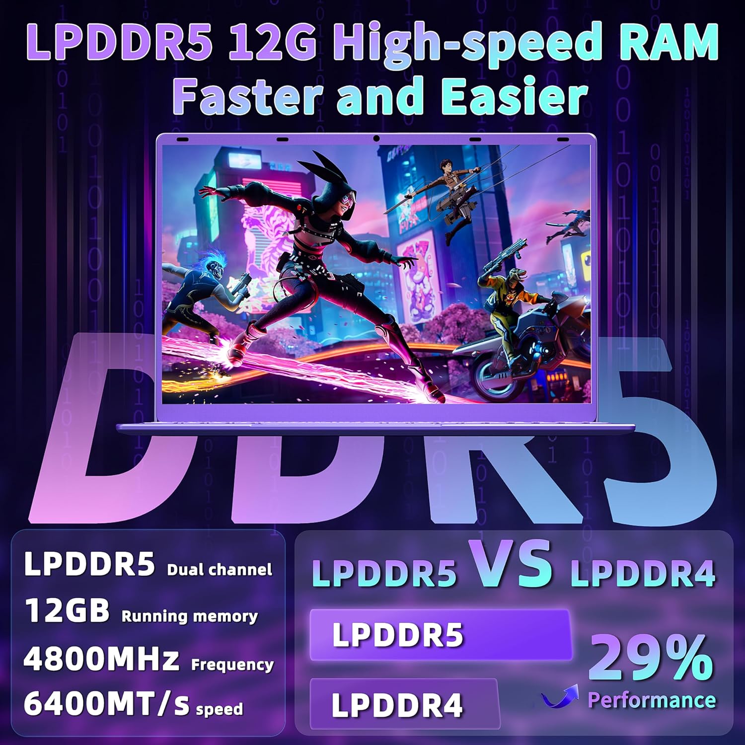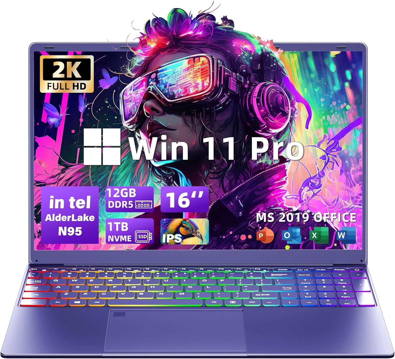 【Win 11 Pro/MS Office 2019】Rumtuk 16″ Purple Gaming Laptop Computer,12th Gen Alder Lake N95 CPU,12G DDR5 RAM 1T NVMe SSD,2K 1920*1200 FHD IPS/Color Backlit KB/Fingerprint/HDMI/WiFi/Long Battery Life