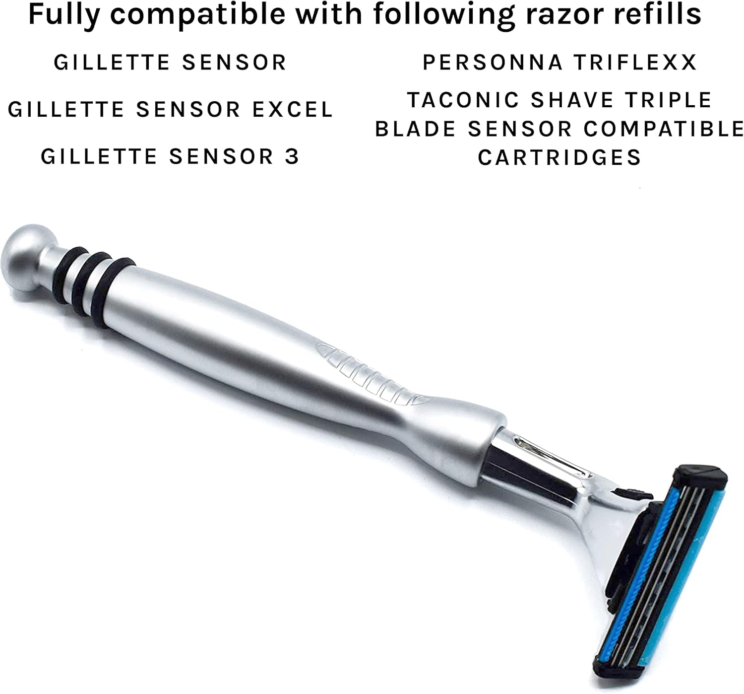 Accepts Gillette Sensor, Sensor Excel, Sensor 3 and Personna Triflexx Blades
