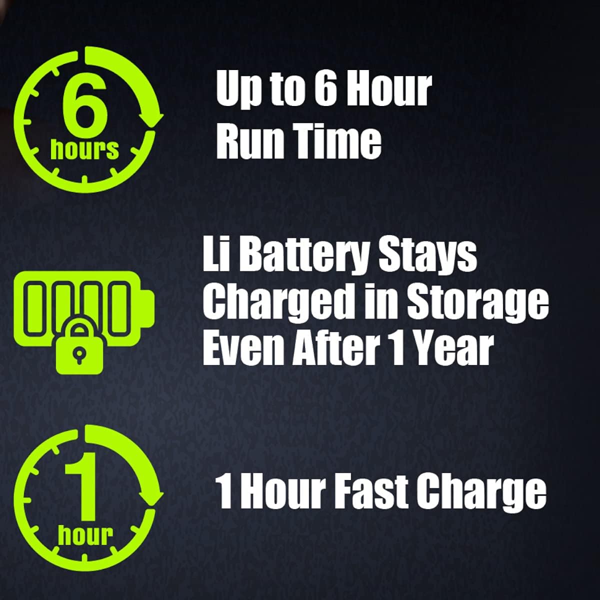 Advanced Lithium Power: Enjoy up to 6 hours of runtime with just a 1-hour charge. Need a quick trim on the go? The 1-minute quick charge feature provides enough power for one full trim.
