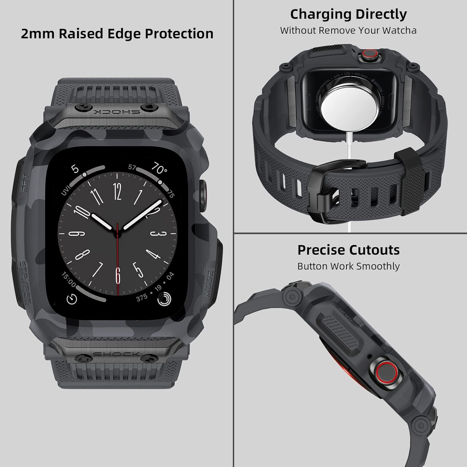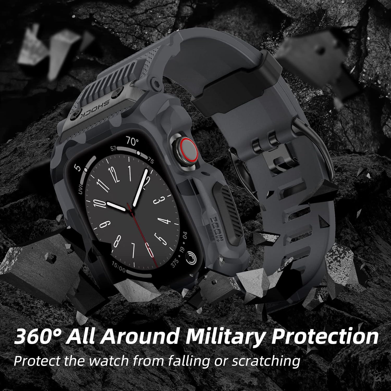 Military Strap with Bumper Cover for Apple Watch series se2/ se/ 6/ 5/ 4 44mm, Series 9/8/7 45mm